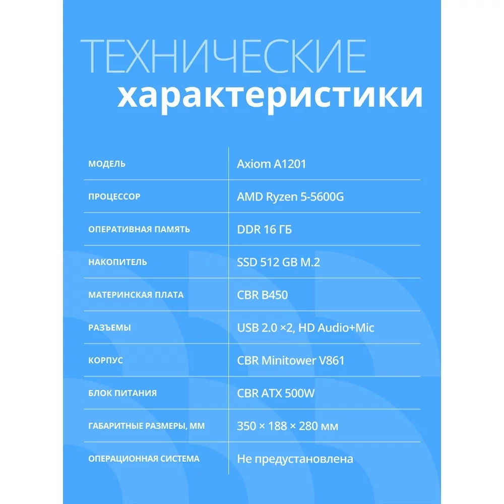 Компьютер CBR Axiom A1201 AMD Ryzen 5 5600G / Cbr MB-ARA520-RTL / 16GB / SSD 512GB (A1201AMDR5ARA520-RTL16G512G)