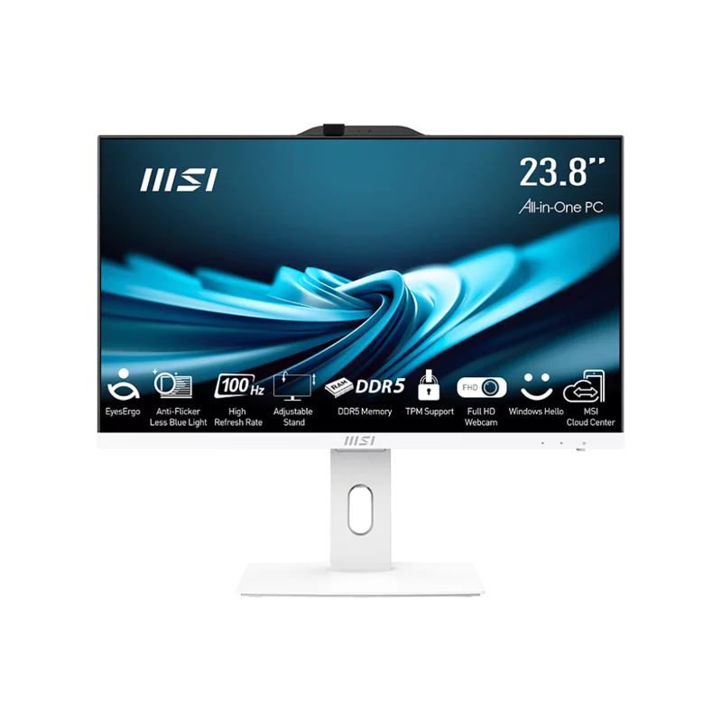 Моноблок/ MSI PRO AP242P 14M 23.8"(1920x1080 (матовый) IPS)/Intel Core i5 14400(2.5Ghz)/8192Mb/256PCISSDGb/noDVD/Int:Intel UHD Graphics 730/Cam/BT/WiFi/-/war 1y/4.63kg/White/DOS + Wireless KB+M (9S6-AE0622-825)