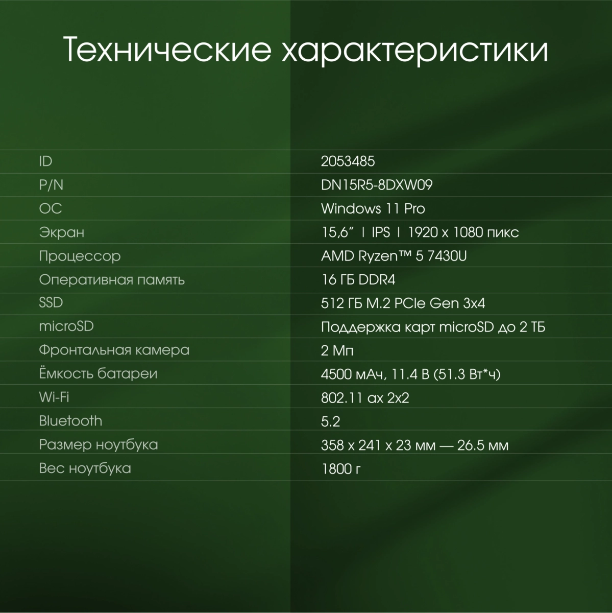 Ноутбук Digma Pro Breve Ryzen 5 7430U 16Gb 512Gb SSD 15.6" IPS FHD Win11Pro silver WiFi BT 4500mAh (DN15R5-ADXW09)