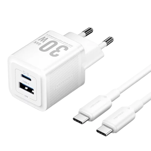Набор для зарядки Vention з/ у GaN 30W 2 порта USB (C + A) и кабель USB-C 3А Белый, шт. (TZ-FEQW0-EU-01)