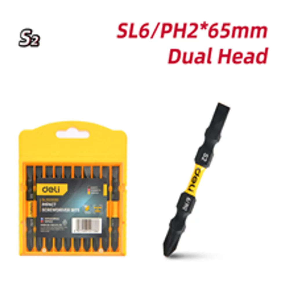 Набор двухсторонних торсионных бит для ударных шуруповертов 10шт Deli DL252202D SL6/PH2*65мм, сталь S2, пласт.кейс