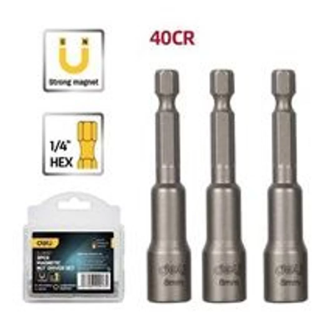 Набор магнитных бит с торцевой головкой 3шт Deli DL4808T 8мм, длина 65мм, сталь 40Cr, пласт. кейс