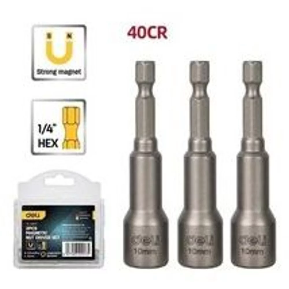 Набор магнитных бит с торцевой головкой 3шт Deli DL4810T 10мм, длина 65мм, сталь 40Cr, пласт. кейс