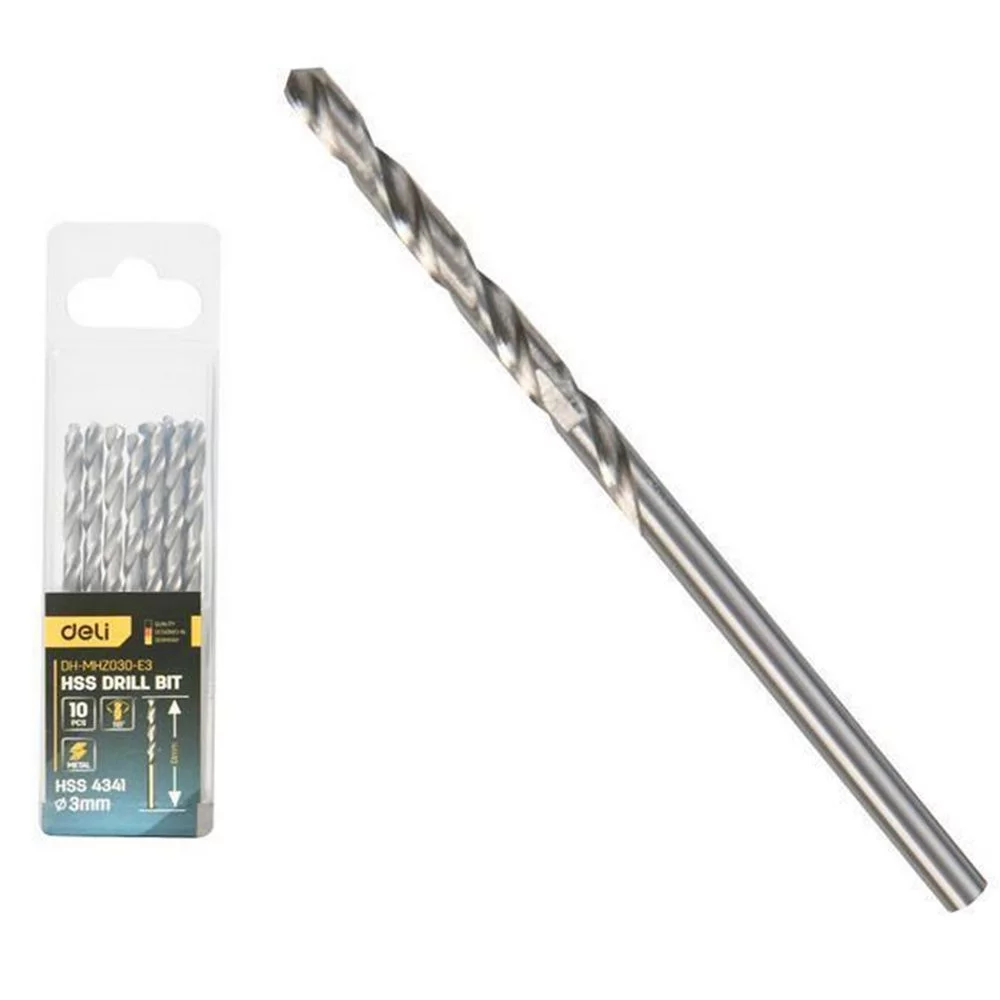 Набор сверл по металлу (3мм, 10 шт) Deli DH-MHZ030-E3 сталь HSS 4341, угол заточки 118 град, пласт. кейс