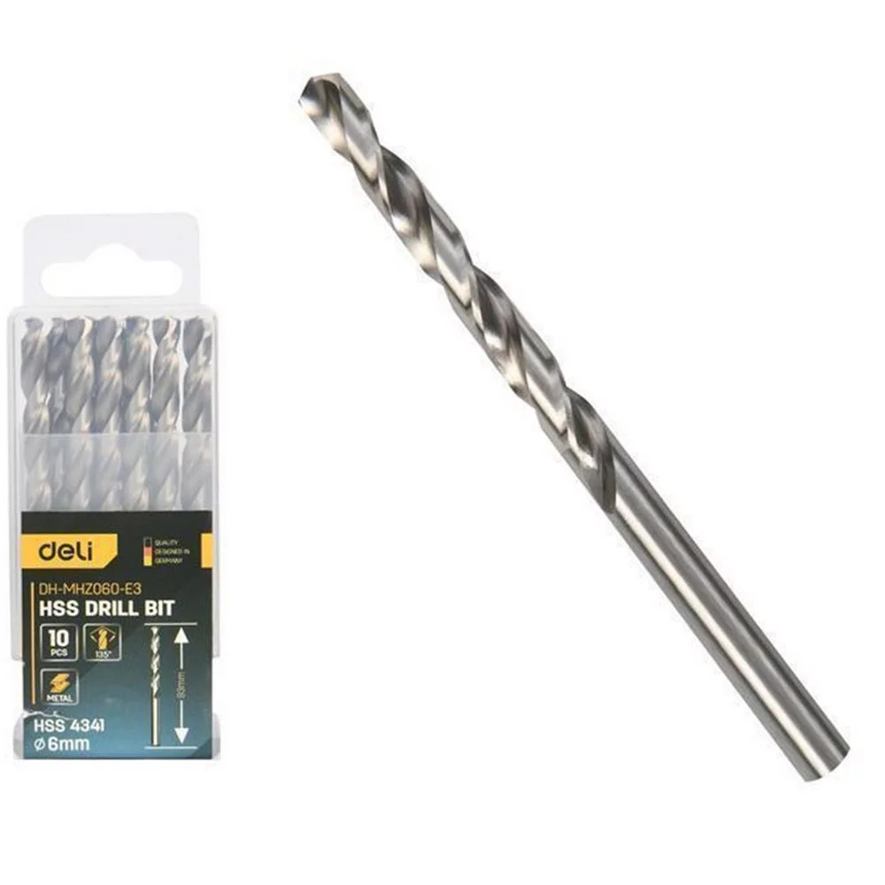 Набор сверл по металлу (6мм, 10 шт) Deli DH-MHZ060-E3 сталь HSS 4341, угол заточки 135 град, пласт. кейс