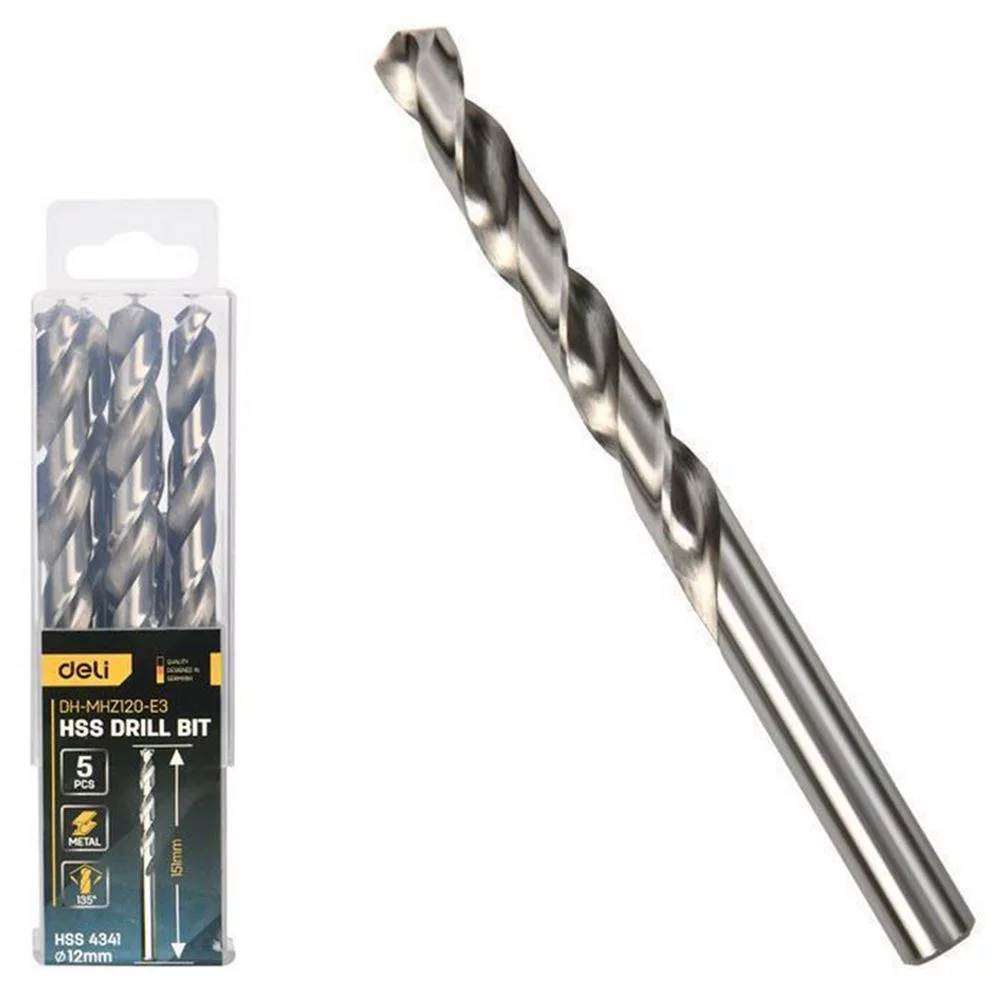 Набор сверл по металлу (12мм, 5 шт) Deli DH-MHZ120-E3 сталь HSS 4341, угол заточки 135 град, пласт. кейс