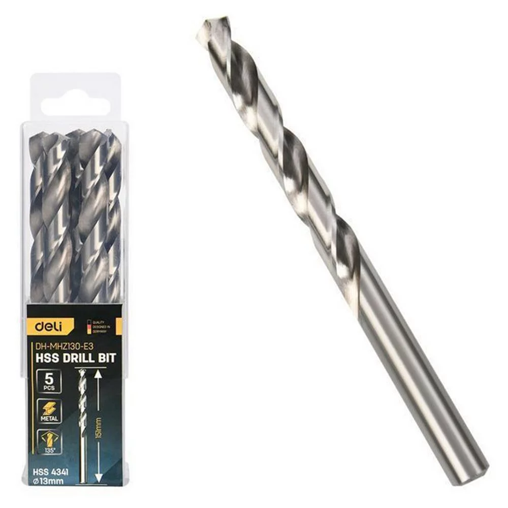 Набор сверл по металлу (13мм, 5 шт) Deli DH-MHZ130-E3 сталь HSS 4341, угол заточки 135 град, пласт. кейс