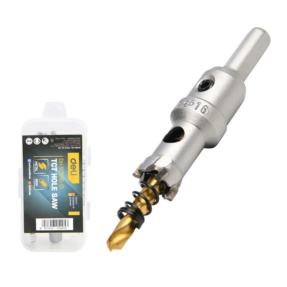 Коронка по металлу твердосплавная с центрирующим сверлом Deli DH-TCT016-E1 диаметр 16мм, шестигранный хвостовик