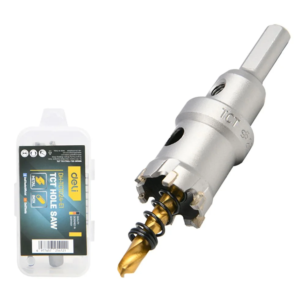 Коронка по металлу твердосплавная с центрирующим сверлом Deli DH-TCT024-E1 диаметр 24мм, шестигранный хвостовик