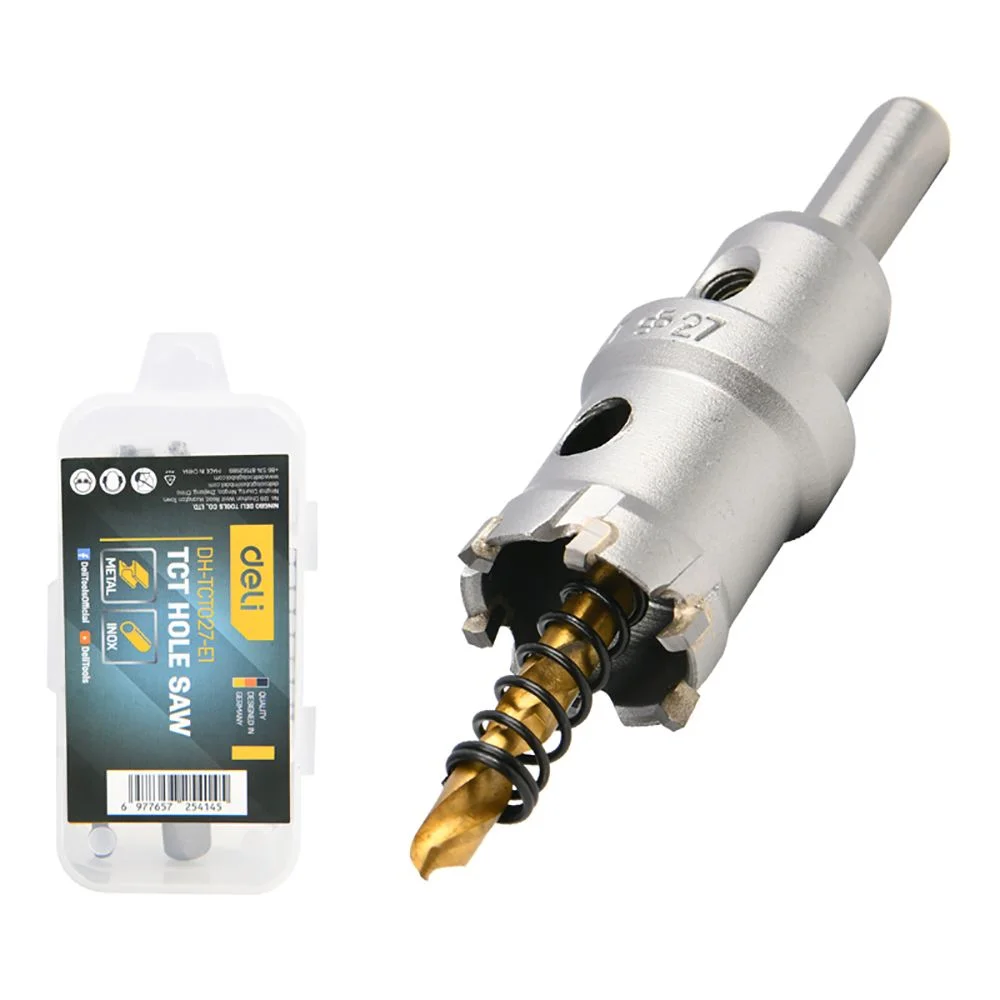 Коронка по металлу твердосплавная с центрирующим сверлом Deli DH-TCT027-E1 диаметр 27мм, шестигранный хвостовик