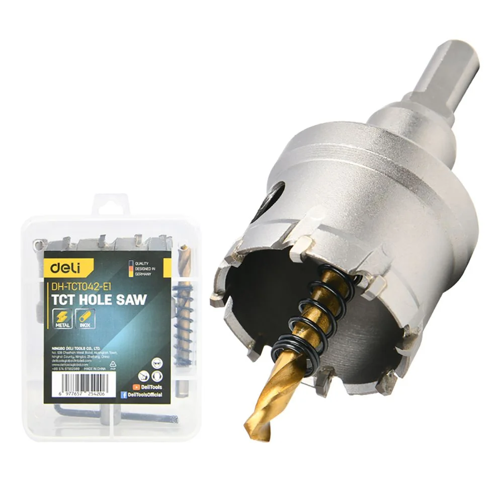 Коронка по металлу твердосплавная с центрирующим сверлом Deli DH-TCT042-E1 диаметр 42мм, шестигранный хвостовик