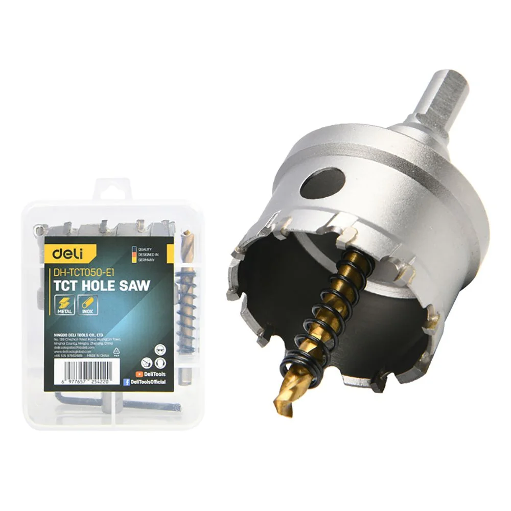 Коронка по металлу твердосплавная с центрирующим сверлом Deli DH-TCT050-E1 диаметр 50мм, шестигранный хвостовик