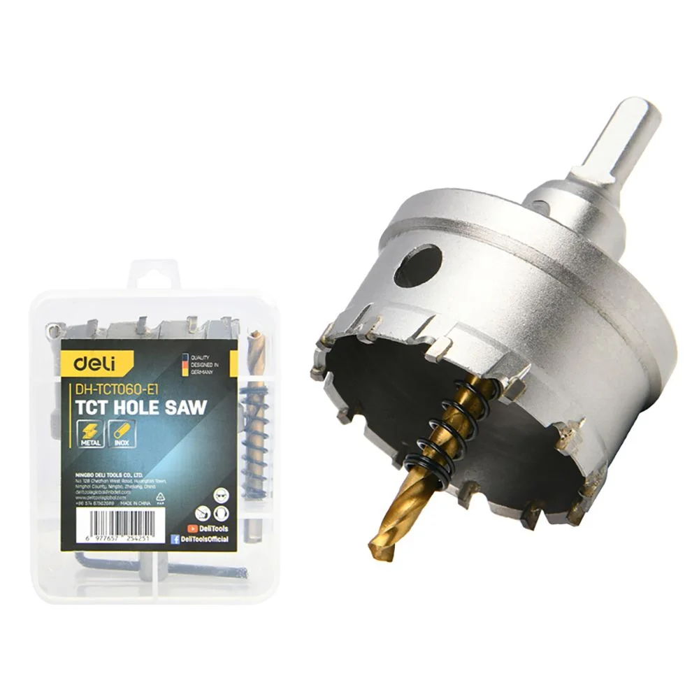 Коронка по металлу твердосплавная с центрирующим сверлом Deli DH-TCT060-E1 диаметр 60мм, шестигранный хвостовик