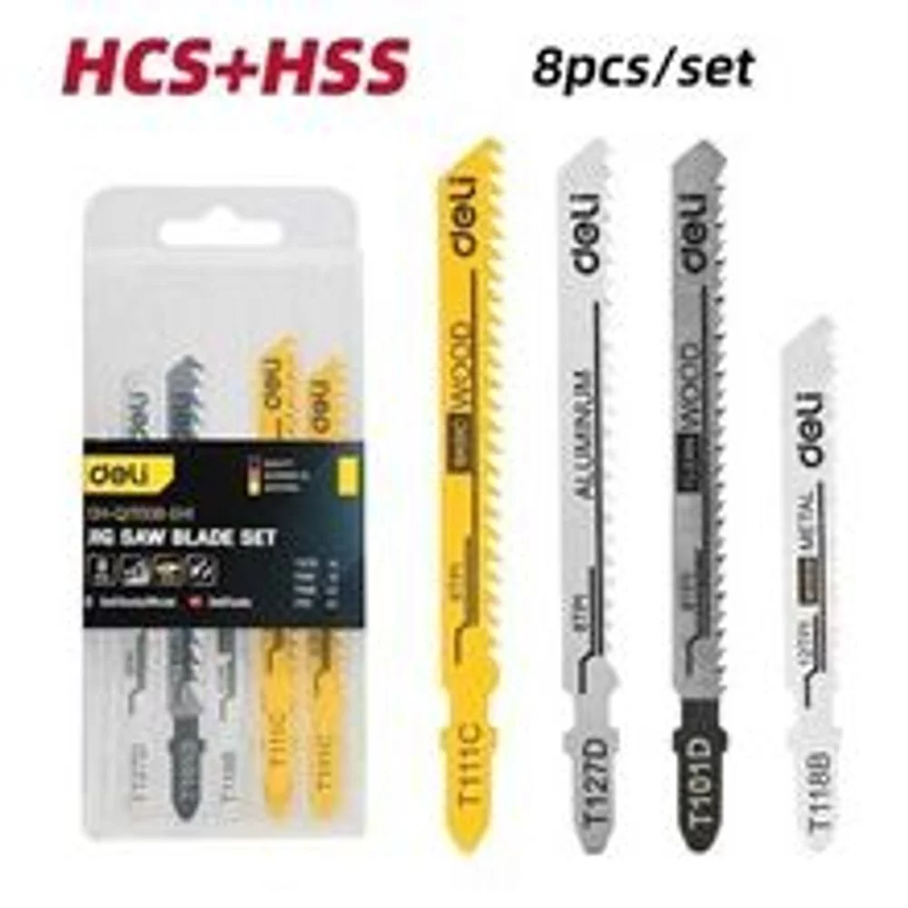 Набор пилок для электролобзика (8шт) универсальный Deli DH-QJT008-EH1 (по металлу 12TPI - 2шт, по дереву 8TPI - 4шт + 6TPI - 1шт, по алюминию 8TPI - 1шт)