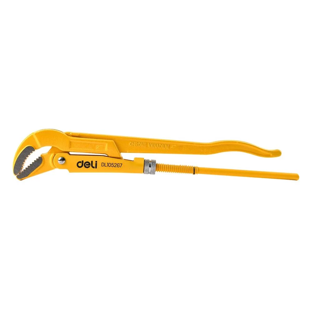 Трубный рычажный ключ №3 с изогнутыми губками Deli DL105267 560мм, раскрытие губок 0-67мм, сталь Cr-V