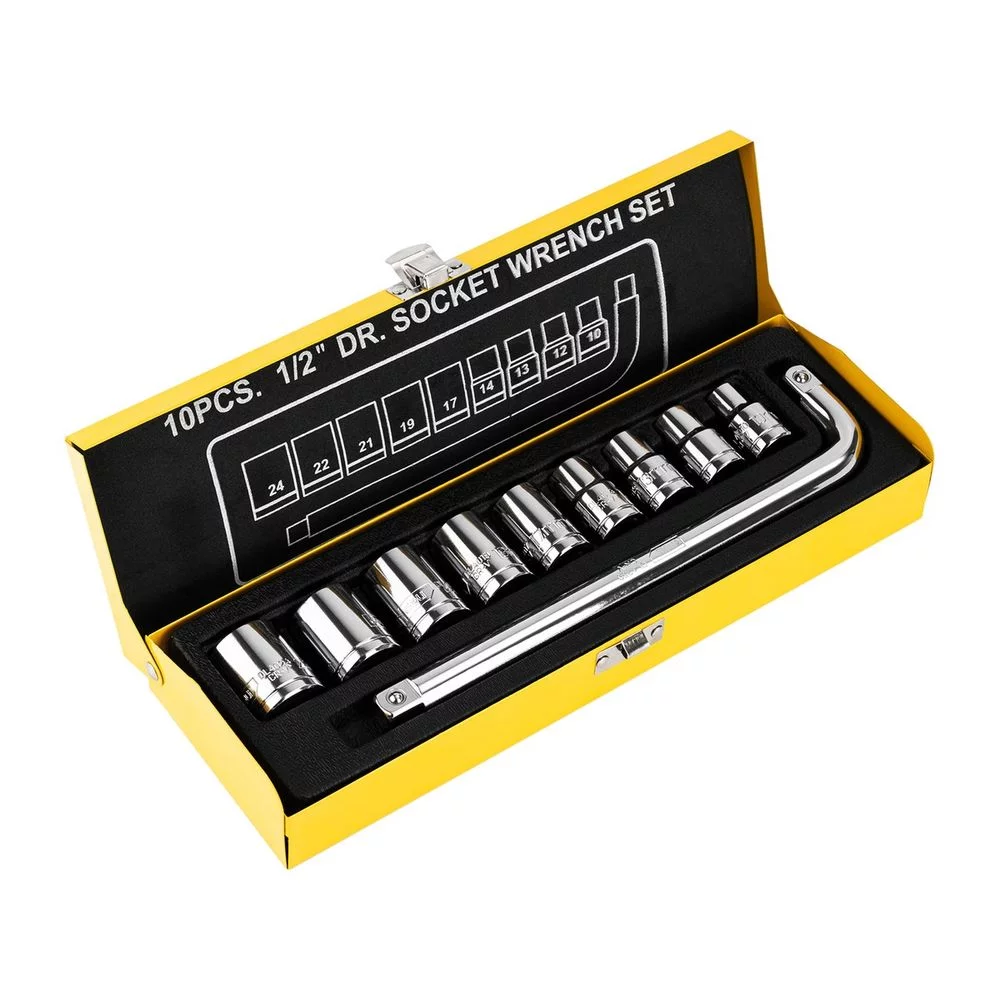 Набор торцевых головок 9 шт Deli DL2010T L-образный ключ, головки 1/2" (10,12,13,14,17,19,21,22,24 мм), металлический кейс, сталь 50BV30