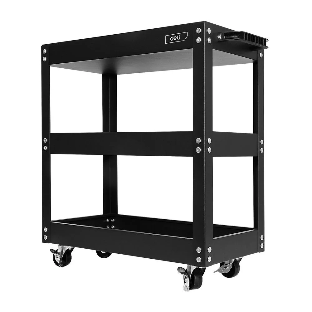 Тележка инструментальная трехсекционная на колесах Deli DL433013 510x260x580мм, до 90кг, толщина полки 0,6мм, толщина стойки 1мм