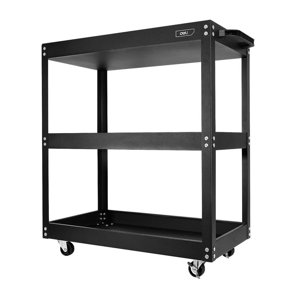 Тележка инструментальная трехсекционная на колесах Deli DL433023 700x350x760мм, до 210кг, толщина полки 0,7мм, толщина стойки 1,2мм