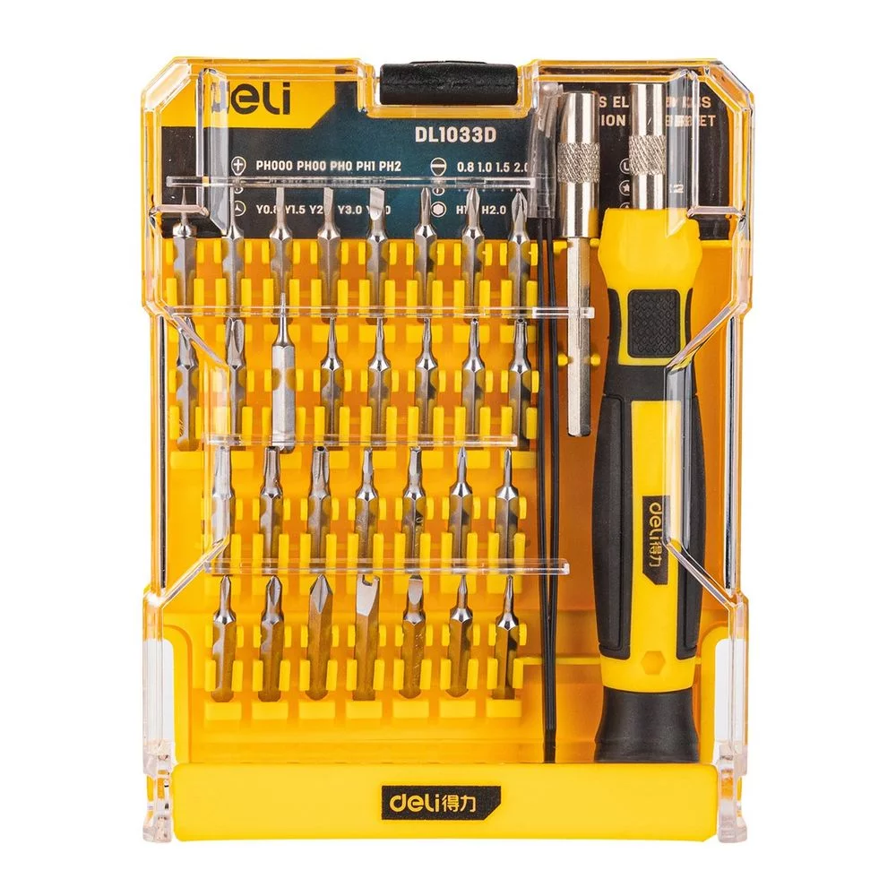 Набор прецизионных отверток Deli DL1033D 33 предмета пинцет в комплекте, пластиковый кейс