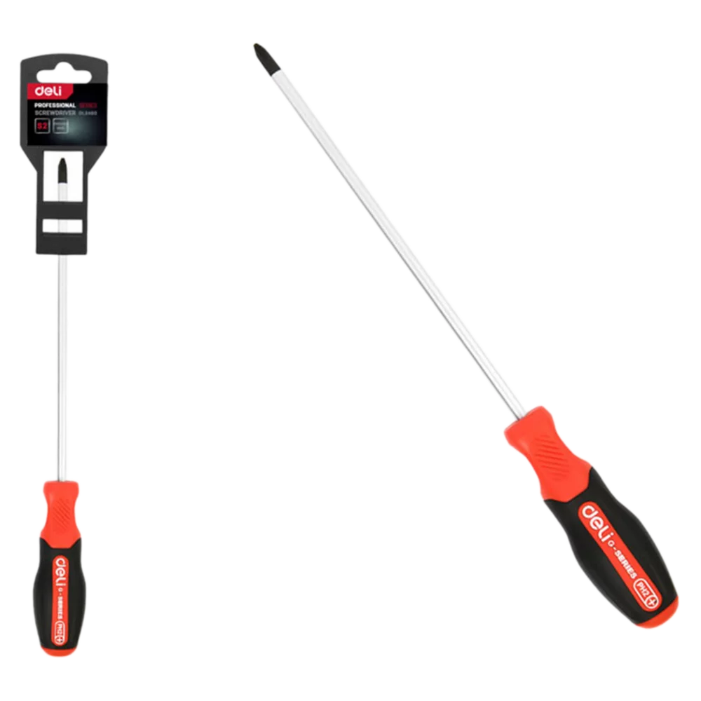 Крестовая DL3460 PH2x100мм сталь S2, матовый стержень, двухкомпонентная прорезиненная рукоять