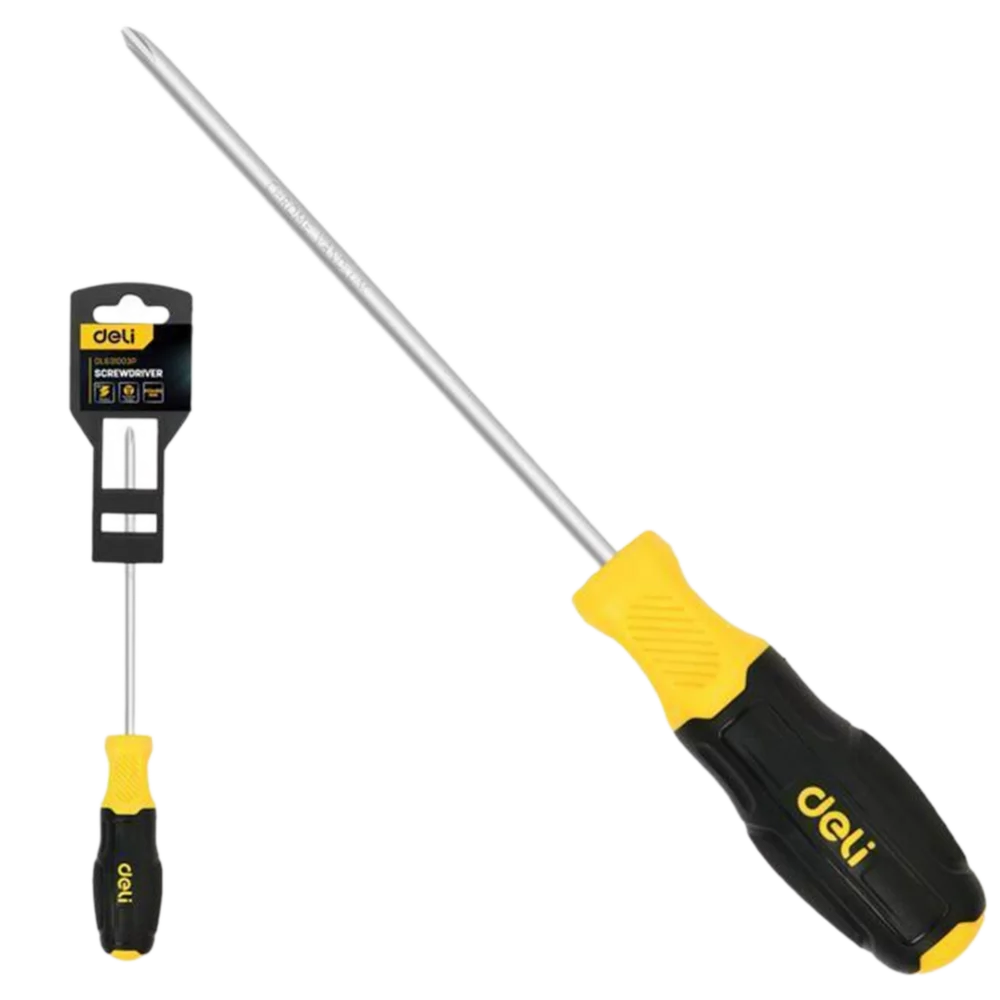 Отвертка Pozidriv Deli DL631003P PZ3x150мм сталь Cr-V, двухкомпонентная прорезиненная рукоять