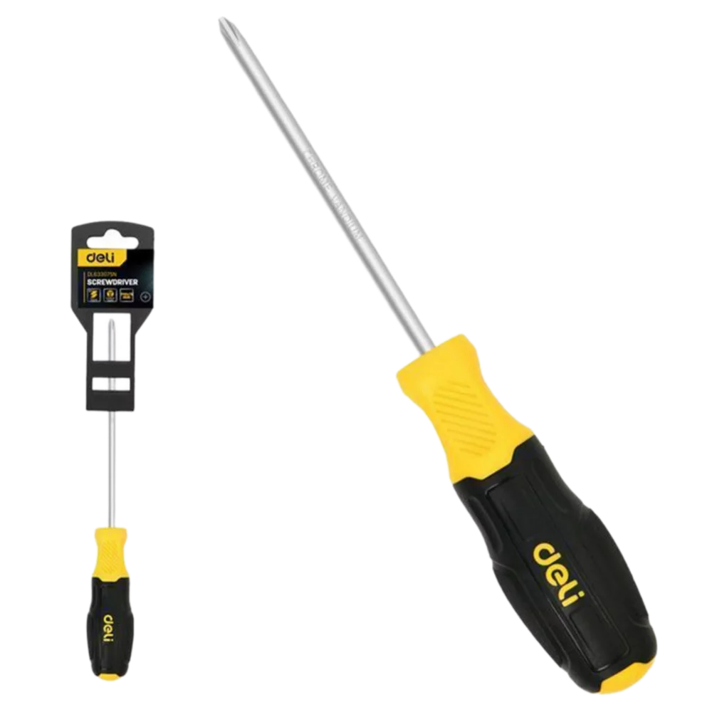 Крестовая отвертка Deli DL633075N PH0x75мм сталь Cr-V, двухкомпонентная прорезиненная рукоять