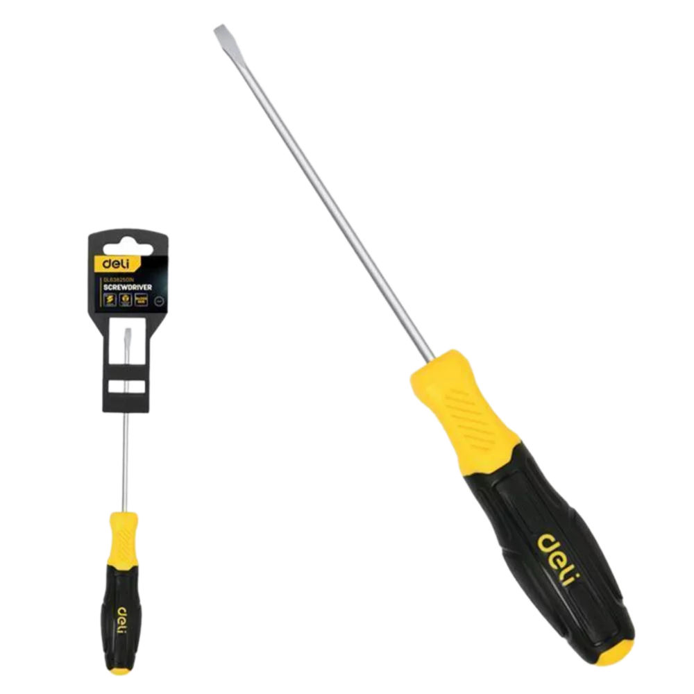 Шлицевая отвертка Deli DL6382501N 8х250мм сталь Cr-V, двухкомпонентная прорезиненная рукоять