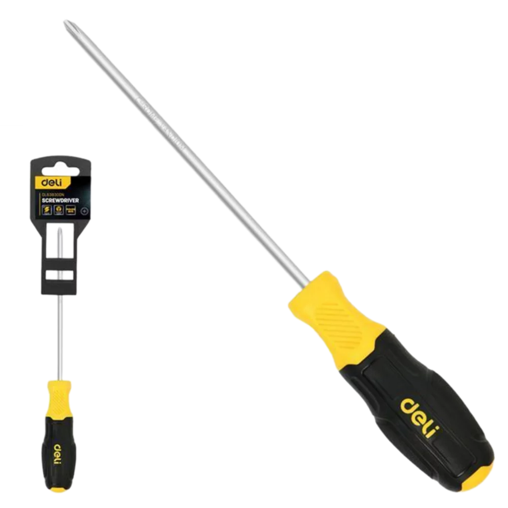 Крестовая отвертка Deli DL638300N PH3x300мм сталь Cr-V, двухкомпонентная прорезиненная рукоять
