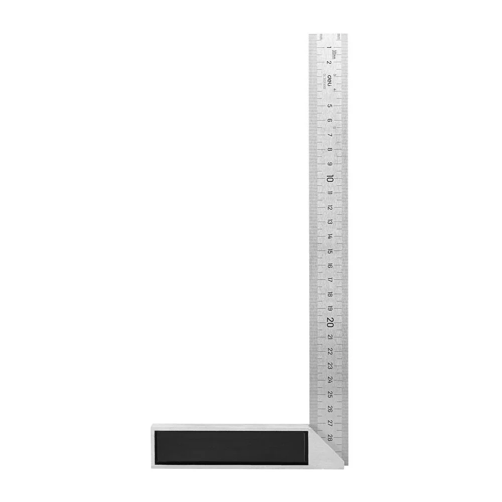 Угловая линейка стальная Deli DL302300 300мм, нержавеющая сталь + алюминиевое основание