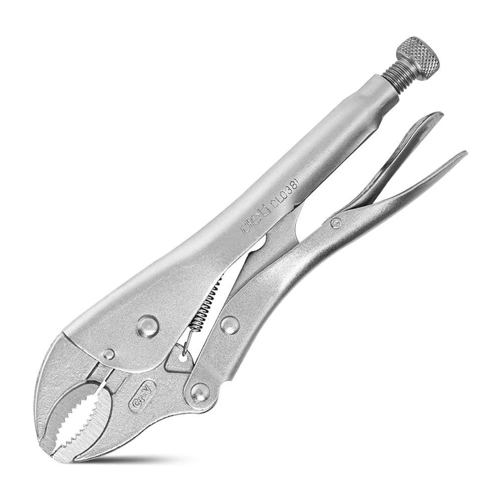 Зажимные клещи с изогнутыми губками Deli DL0381 200мм, рабочий ход 55мм, регулировочный винт