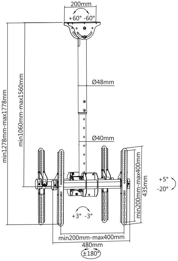 Кронштейн для телевизора Arm Media LCD-1750 черный 26"-65" макс.90кг потолочный поворот и наклон (10175)