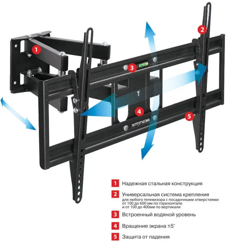 Кронштейн для ТВ ARM MEDIA PT-16 black (max VESA 400x400 мм., настенный, наклонно-поворотный, max 40 кг) (10198)