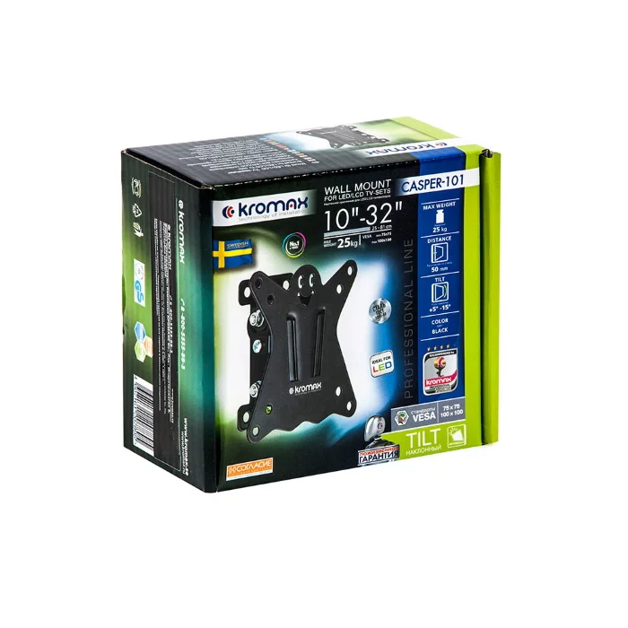 Кронштейн Kromax CASPER-101 настенный для LED/LCD TV 10"-32", наклон +5-15°, max VESA 100x100, от стены 50 мм, 25 кг, черный (20168)