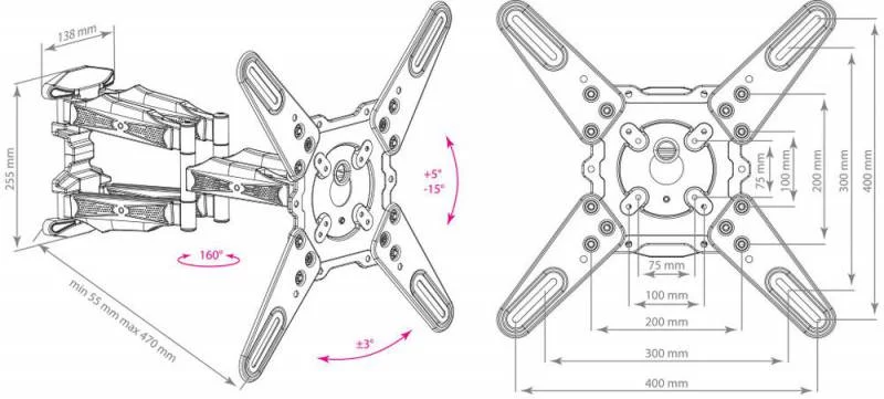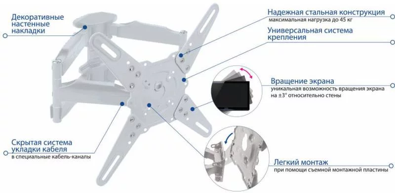 Кронштейн для телевизора Kromax ATLANTIS-45 белый 22"-65" макс.45кг настенный поворот и наклон (20218)