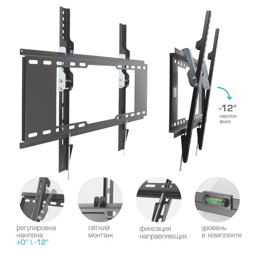 Кронштейн для ТВ KROMAX IDEAL-102 black (max VESA 600x400 мм., настенный, наклонный, max 40 кг) (24037)