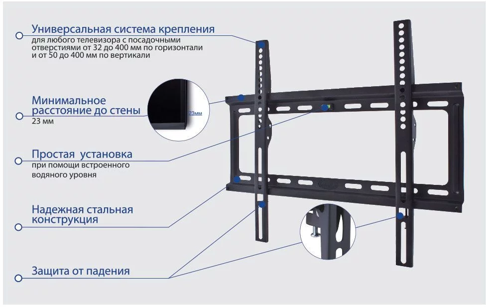 Кронштейн для ТВ KROMAX IDEAL-3 black (max VESA 400x400 мм., настенный фиксированный, max.50 кг) (26003)
