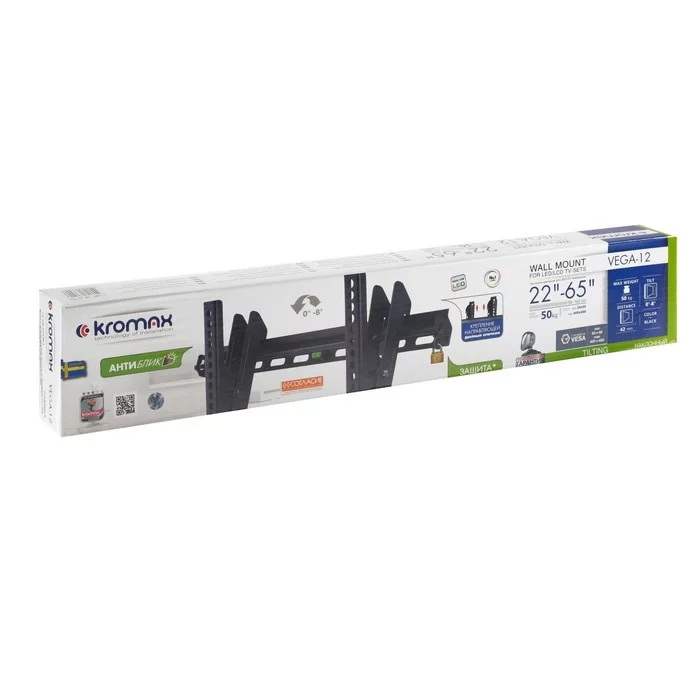 Кронштейн Kromax VEGA-12 настенный для LED/LCD TV 22"-65", наклон 0-8°, от стены 34 мм, max 50 кг, черный (26014)
