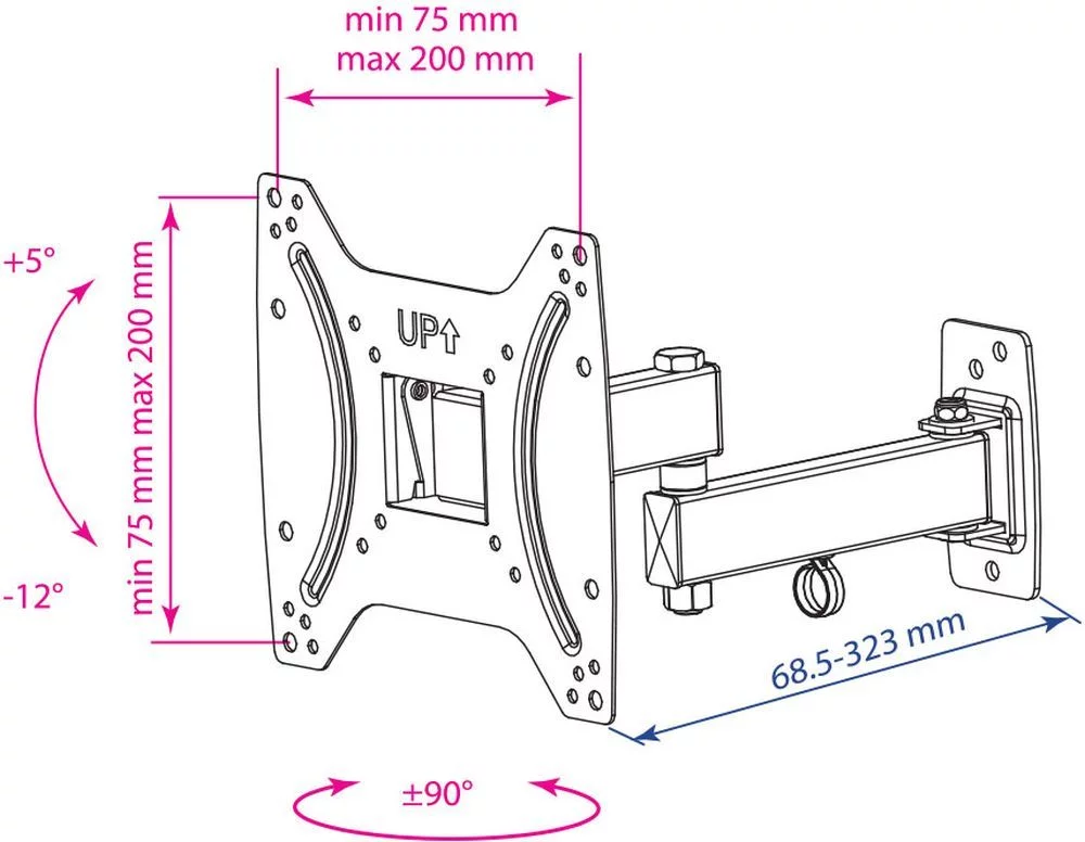 Кронштейн для ТВ KROMAX OPTIMA-204 black (max VESA 200x200 мм., настенный, наклонно-поворотный, max 25 кг) (28008)