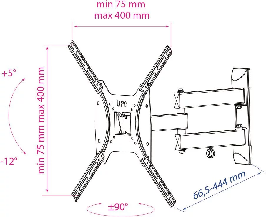 Кронштейн для ТВ KROMAX OPTIMA-404 black (max VESA 400x400 мм., настенный, наклонно-поворотный, max 35 кг) (28011)