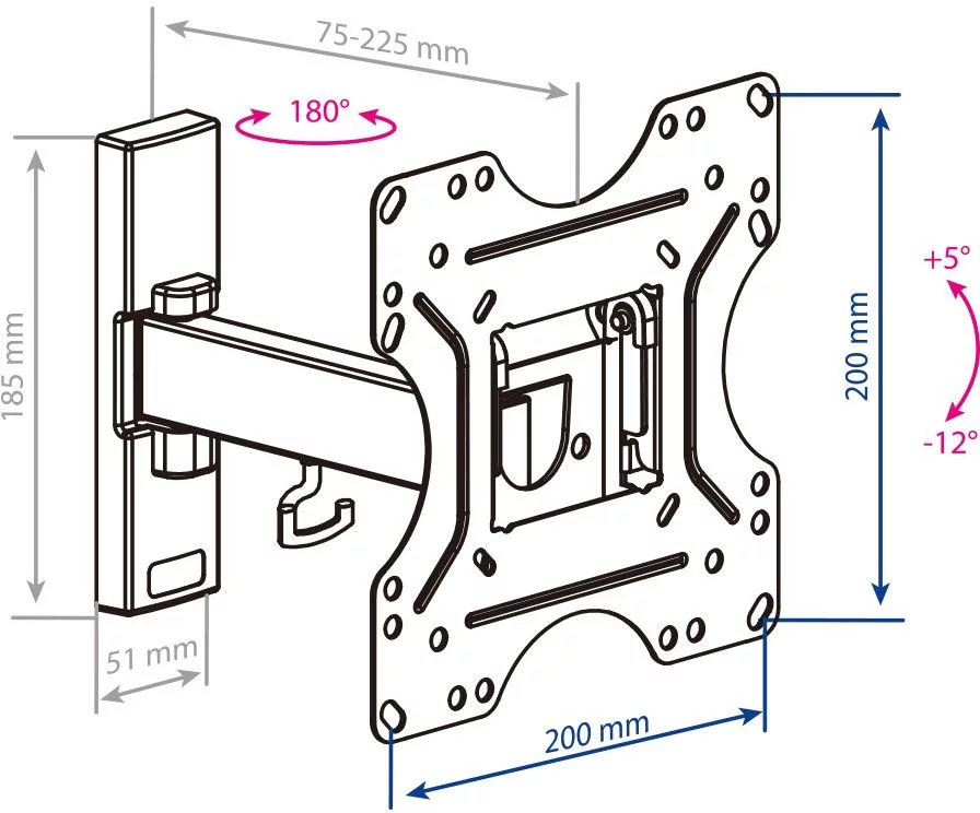 Кронштейн для ТВ KROMAX OPTIMA-213 black (max VESA 200x200 мм., настенный, наклонно-поворотный, max 30 кг) (29009)