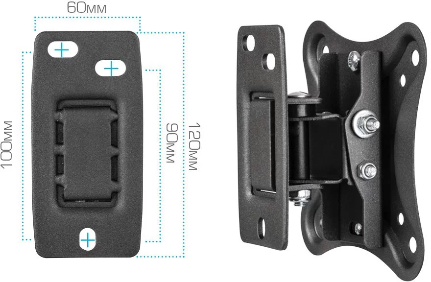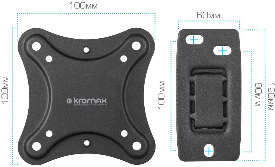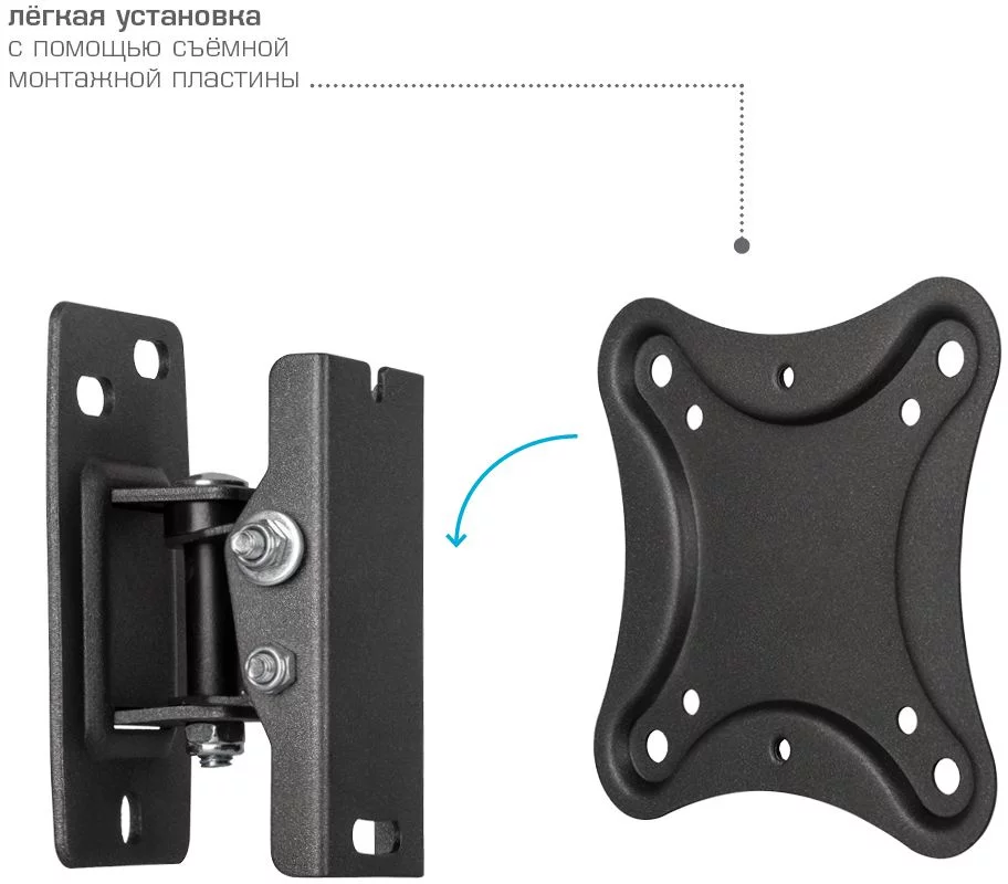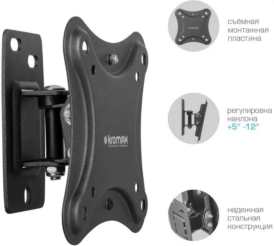 Кронштейн для ТВ KROMAX CORBEL-1 black (max VESA 100x100 мм, настенный, наклонно-поворотный, max 25 кг) (90461)