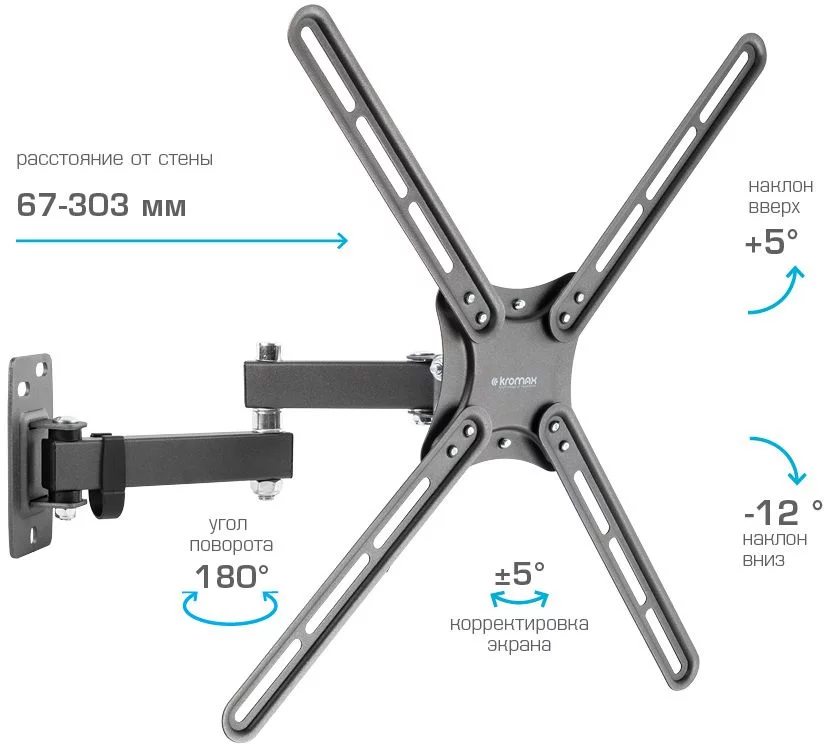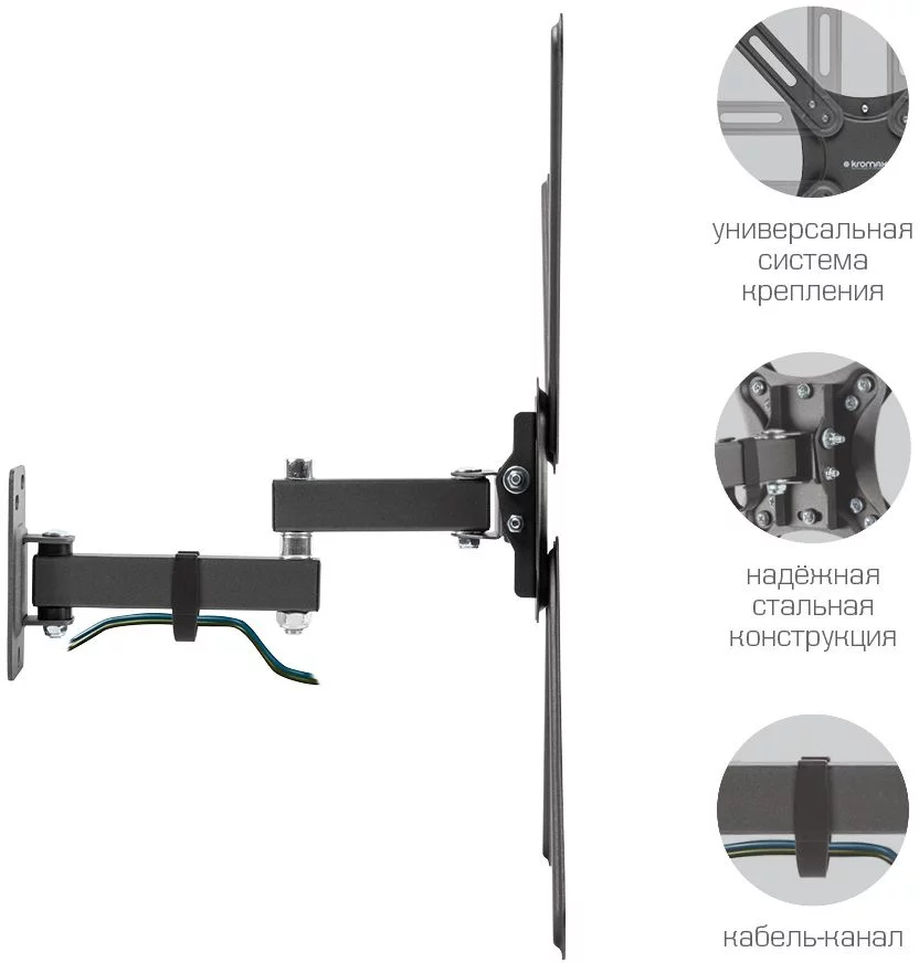Кронштейн для телевизора Kromax CORBEL-7 черный 22"-65" макс.30кг настенный поворот и наклон (90467)