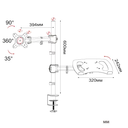 Кронштейн для монитора/ноутбука Cactus CS-VM-LH07-BK черный 13"-27" макс.8кг настольный поворот и наклон