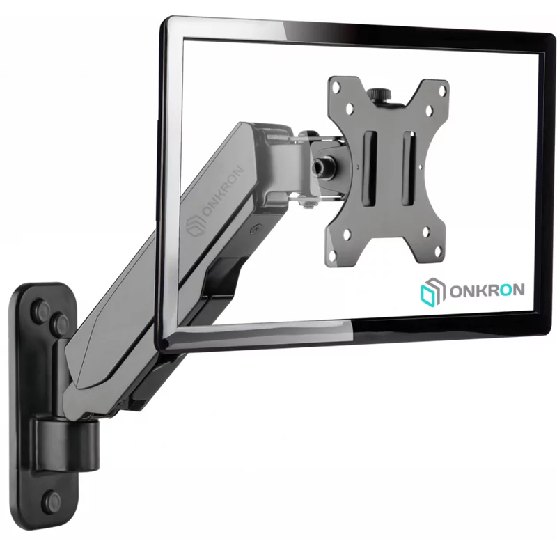 Кронштейн НАСТЕННЫЙ для монитора ONKRON/ 13-34" 1 колено, макс. 100*100, струбцина, наклон -35?+35? поворот 180?, расстояние от стены 85-361мм, макс (ONKRON G120 BLACK)