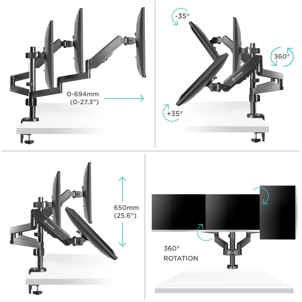 Кронштейн для 3-х мониторов ONKRON/ 13-32" макс. 100*100, струбцина, наклон -35º+35º поворот 360º, вылет от основания 0-600мм, макс. нагрузка 3х1-8к? (ONKRON G280 BLACK)