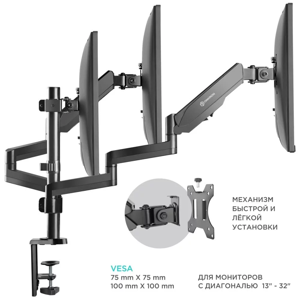 - Кронштейн для 3-х мониторов ONKRON G280 (ONKRON G280 BLACK) (ONKRON G280 BLACK)
