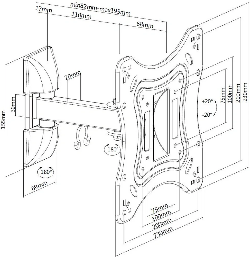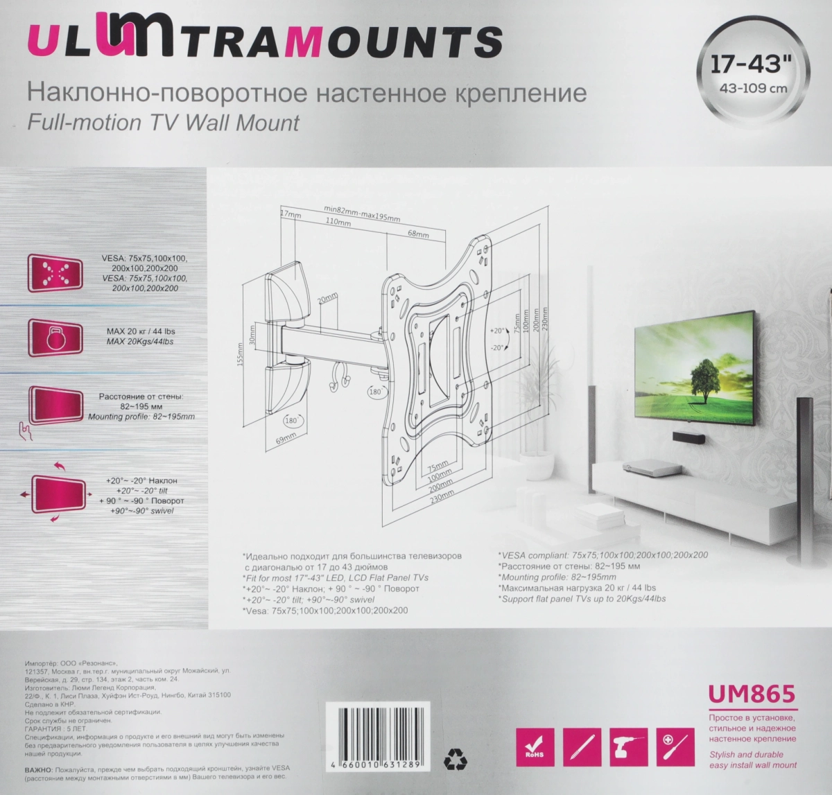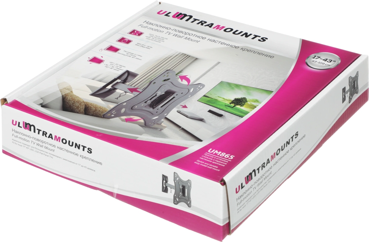 Кронштейн для телевизора Ultramounts UM865 черный 23"-42" макс.20кг настенный поворотно-выдвижной и наклонный