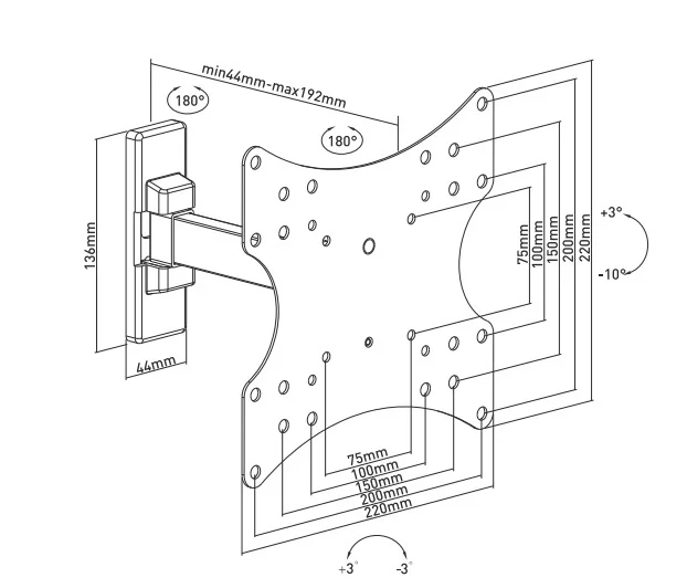Кронштейн для телевизора Ultramounts UM876 черный 17"-42" макс.20кг настенный поворот и наклон