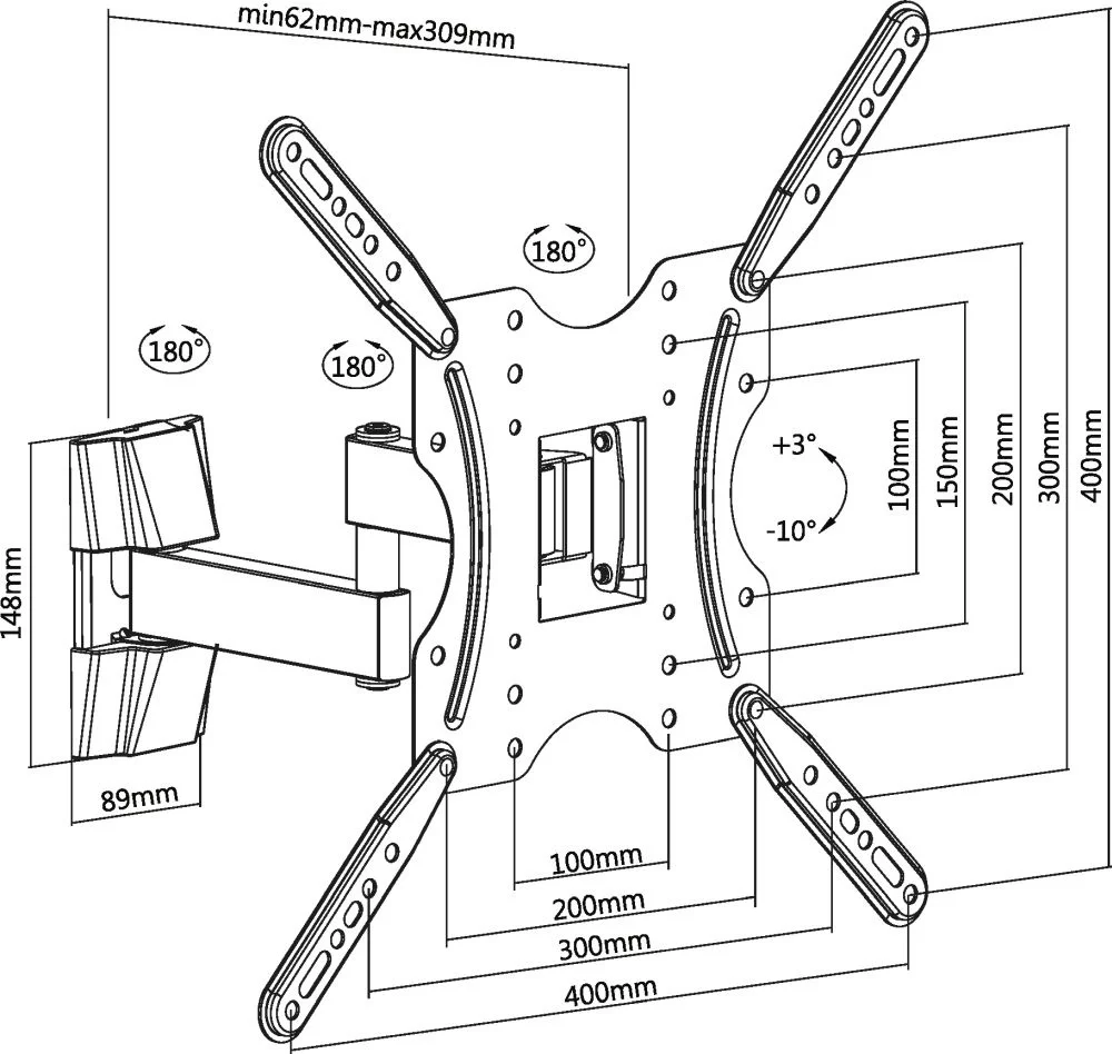 Кронштейн для телевизора Ultramounts UM903 черный 32"-55" макс.20кг настенный поворотно-выдвижной и наклонный