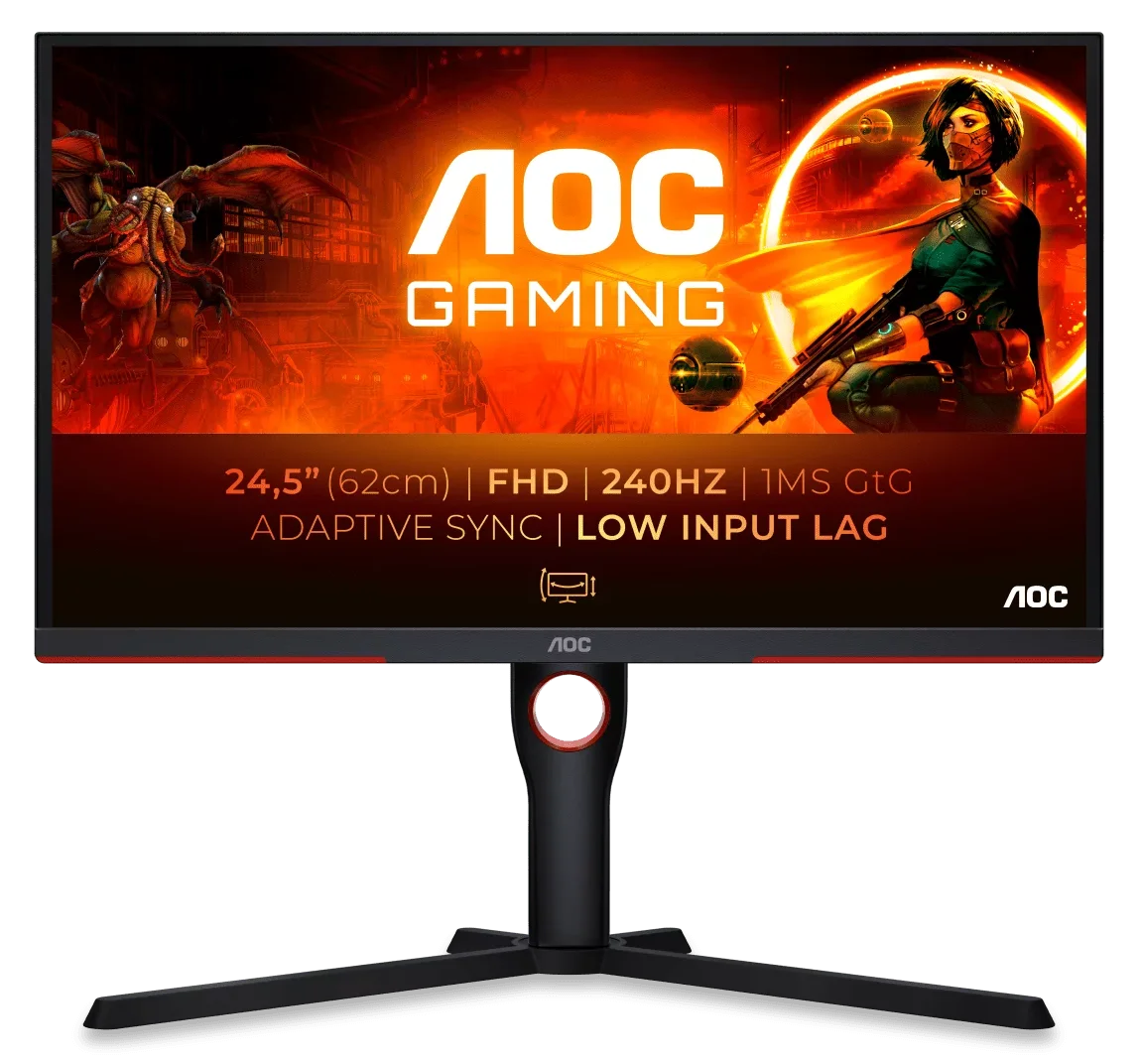 AOC 25G3ZM 24,5", 1920x1080, VA, 240Hz, 80M:1, 300cd, 1ms, 2*HDMI, DP, Speakers, FreeSync, Low Blue Light, Flicker Free, H. Adj, pivot, VESA, 3Y, Black